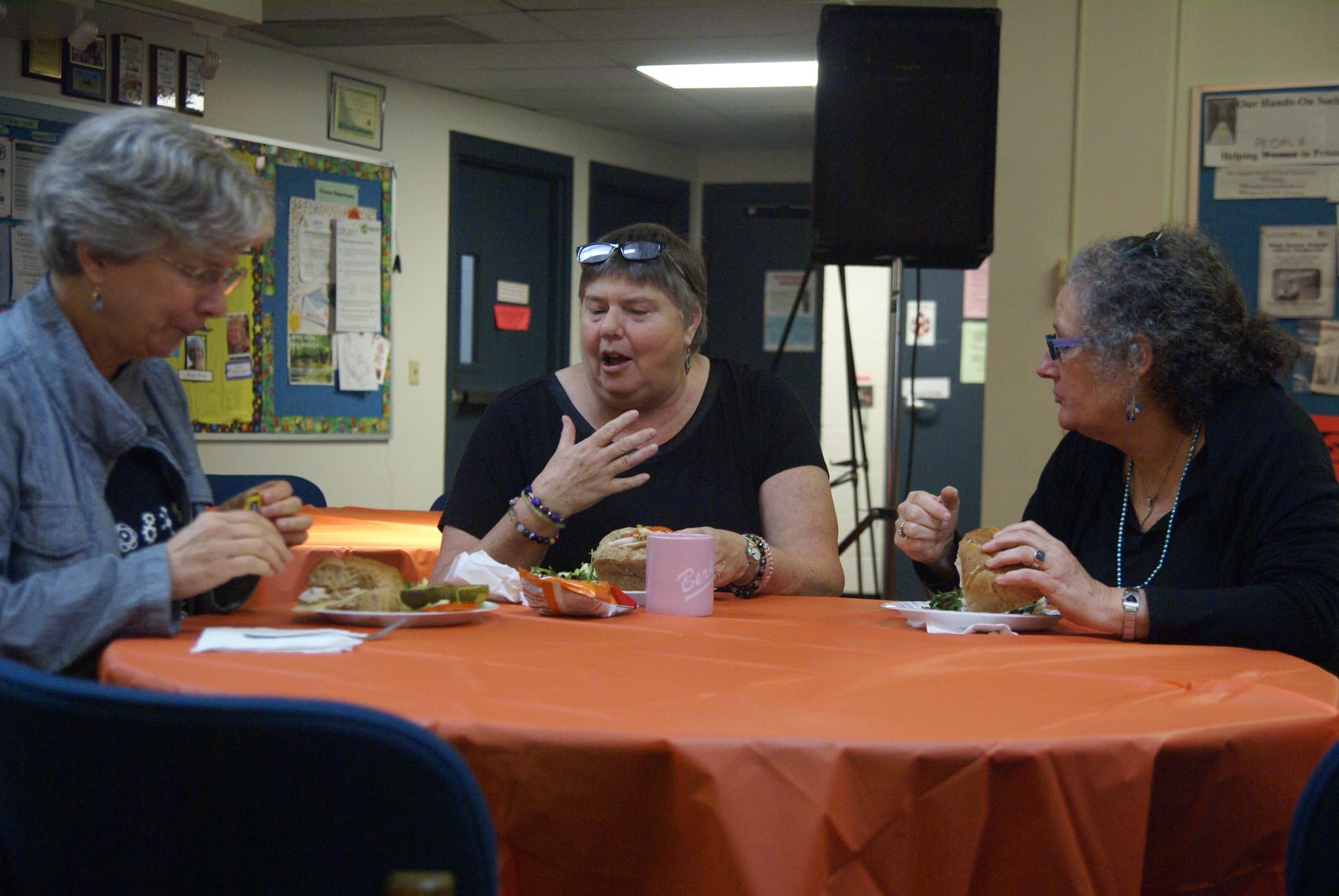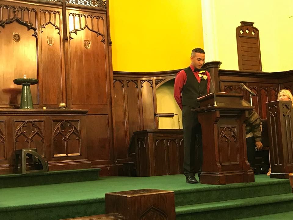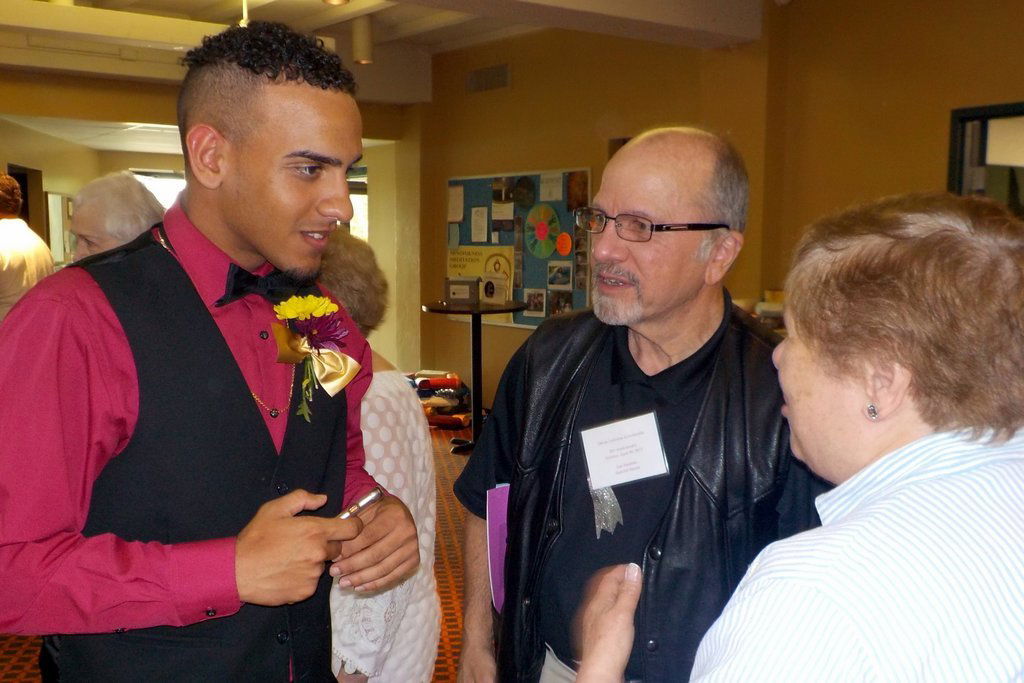 Scholar Roman Colon, with UCH members, Margaret Carrow, Jessica Chuckalovcak, and Rick Hawley